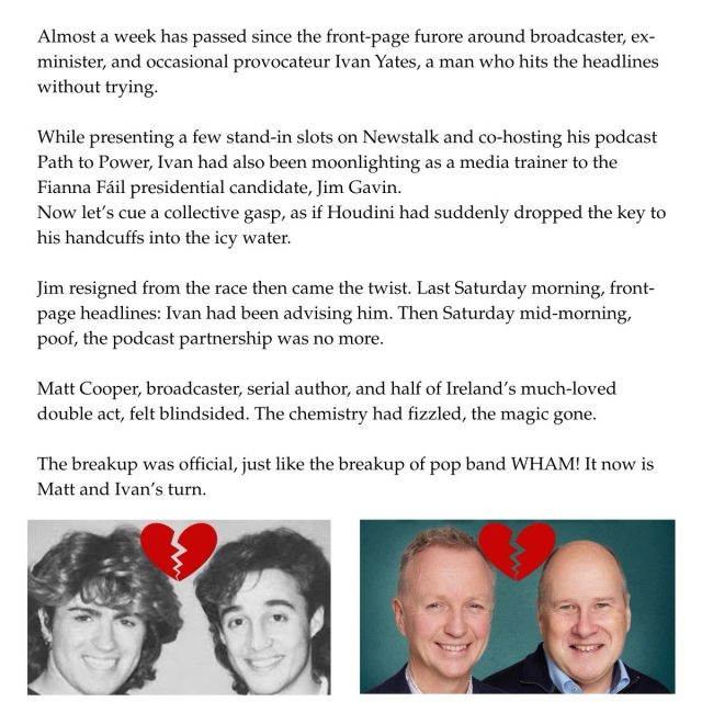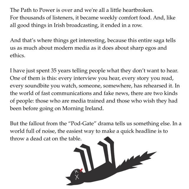 Good morning happy Friday! We are almost a week into this PODGATE story and here is an opinion piece I have written for the Irish Examiner thank you Deirdre O’ Shaughnessy for the invitation and opportunity. Rather than focus on issues of the day, this story rumbles on. Goalhanger